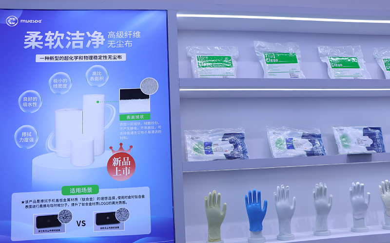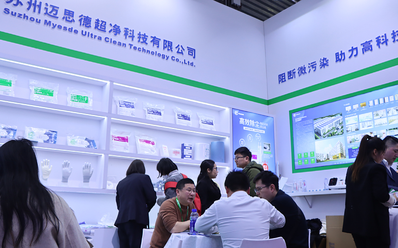 展会现场,我司展区布置得整洁而富有科技感,各种无尘洁净产品摆放得井井有条,方便来宾参观体验。现场工作人员热情地向每一位来宾介绍产品的特性及应用场景,让来宾深刻感受到了我司产品在半导体行业中的重要作用。无尘布和无尘纸以其卓越的洁净性能和稳定性,受到了众多半导体制造企业的青睐。它们能够有效去除生产过程中的微小颗粒,确保产品的洁净度达到行业标准。此外,无尘室手套同样备受关注。无尘室手套经过特殊工艺处理后,可以达到十级洁净度,能满足半导体行业的洁净要求。